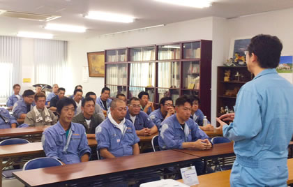 私達の仕事は常に「死」というものが付きまといます。それゆえ毎日の仕事に真剣に挑まなければなりません。弊社では毎月、全従業員が集まって開催する月例安全ミーティングを実施しております。人間が人間である以上、エラーを起こす性質を生まれながらに持っております。「災害ゼロはあり得ない」という考え方を根底に置き、危険の芽を見極め、排除できる能力を養う努力が必要となります。大難を小難に、小難を無事にする取り組みを積極的に実施し、お客様にご迷惑を掛けないように。そして一番は、従業員の命と、その家族の生活を守る為に、個々の安全に対する意識のレベルアップを継続的に実施してまいります。過去の災害事例やKYK、現場の問題点や要望事項など、風通しの良い全員参加型のミーティングを実施し、より安全な職場づくりを心掛けてまいります。