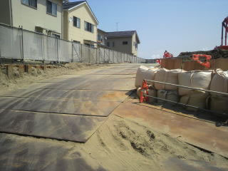 特に経験上、川沿いや海沿いの高台、山間部に多い問題です。低床トレーラは大型トラックと異なり、トレーラ部分が非常に低いので、トラクタヘッドが坂道を登っていくとトレーラー部分が接触してしまい下手をすると身動きが取れなくなります。大型トラックは長さが約12mあります。車体の一番後ろには固定型のバンパーがあるので、このバンパーが坂道に接触してしまいます。よって、今まで様々なスロープのある現場で経験し、お願いする勾配は5%未満が理想です。7%以上になると低床トレーラは入りません。7%以上の場合、車種にもよりますが、大型トラックのバンパーが接触してしまいます。もう一つ注意しなければならい場所が、踏切です。平坦な踏切なら大丈夫ですが、カマボコ状になっている踏切はトレーラだと腹が接触し、身動きが取れなくなり、大参事になりかねません。実際、過去に大事故がありました(弊社ではありません)。
