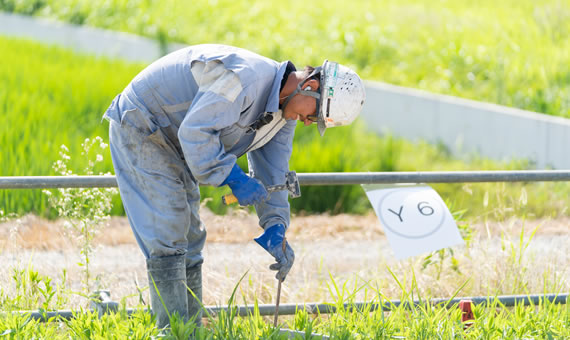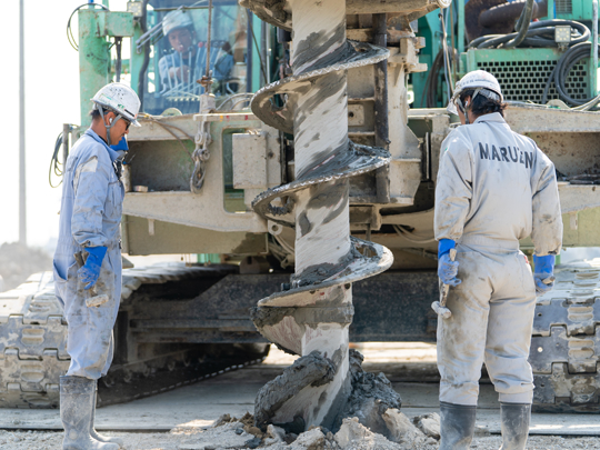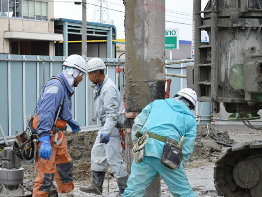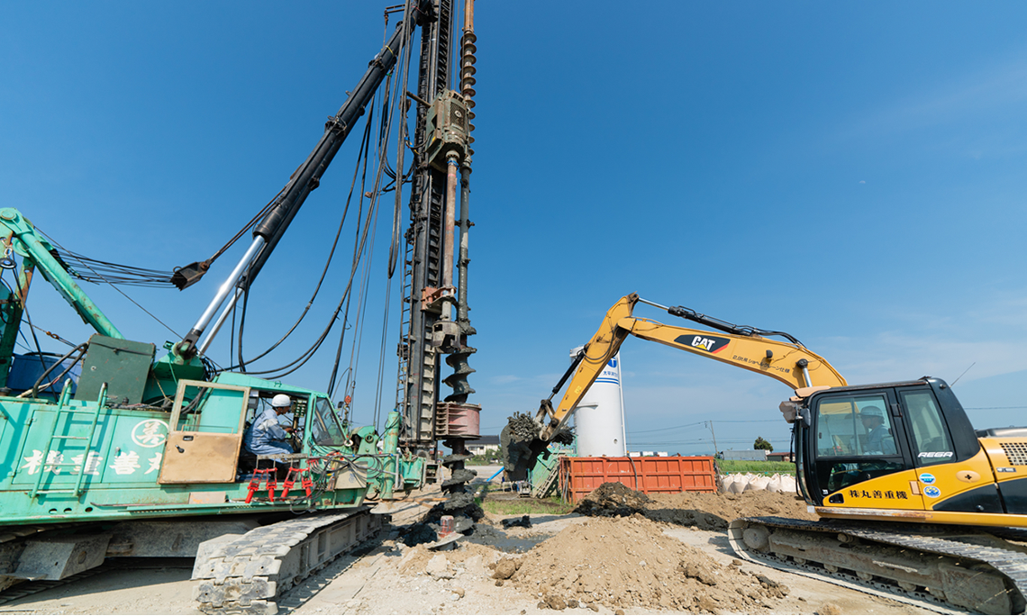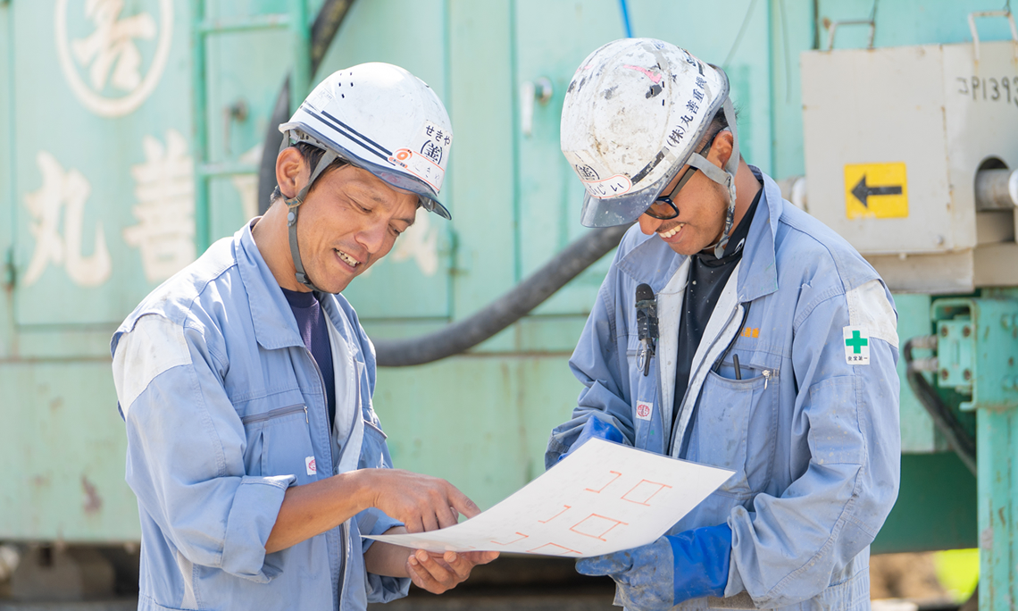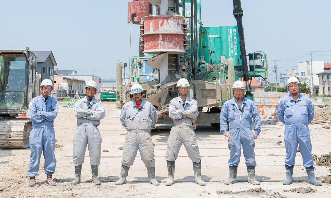 杭打工事は地中に既製杭(製品)を埋設してしまうので、 他の建設工事と違い、目に見えない地中の中で完璧な仕事をしなければなりません。 目で確認できないからこそ、 私たちは杭の一本一本に対し、誠実に確実に仕事をさせていただきます。